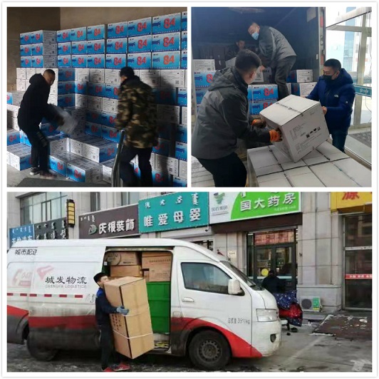 1月27日,城發(fā)物流配送中心工作人員提前結(jié)束假期,為各醫(yī)藥門店、社區(qū)門診和醫(yī)院配送醫(yī)療物資和藥品。