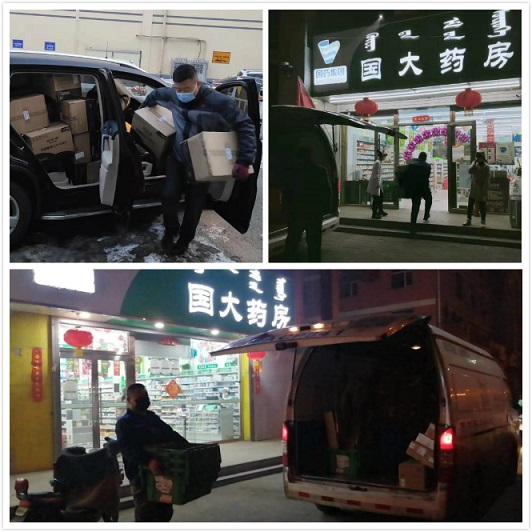 1月24日,應(yīng)仁和堂醫(yī)藥公司請(qǐng)求,為滿足市民防疫需求,臨時(shí)組織配送中心行政人員將口罩、消毒液、體溫計(jì)等其他防疫物資配送至各門店。
