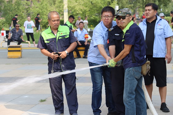 在快速啟動(dòng)消防栓,連接消防水帶場景模擬中,參與演練的工作人員,動(dòng)作敏捷,安裝準(zhǔn)確,配合有序,第一時(shí)間消滅火情。