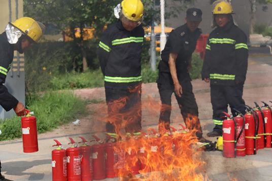 項(xiàng)目處經(jīng)理李銳詳細(xì)介紹了四公斤手提干粉滅火器的使用方法和注意事項(xiàng)。隨著第一著火點(diǎn)煙感報(bào)警器的預(yù)警聲,各組人員統(tǒng)一指揮,高效協(xié)調(diào),臨危不亂,在實(shí)戰(zhàn)中鍛煉了火場組織疏散程序以及火場逃生、自救互救、搶險(xiǎn)滅火的能力。