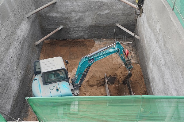 9月24日上午,筆者遠(yuǎn)遠(yuǎn)看到一吊車正將坑內(nèi)挖掘的土方吊起,走近作業(yè)坑,看到坑內(nèi)小型挖掘機(jī)正在開挖土方,還有2名施工人員正在進(jìn)行鋼筋網(wǎng)片的焊接。