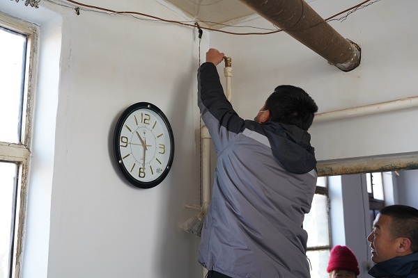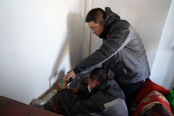 在回訪村中二站南線的路上,一位年近九十的大娘著急地朝我們走來。她說:"到我家看看吧,暖氣不熱。"工作人員跟隨老人來到其家中。大娘家為小南房,大約20平米左右,四面漏風(fēng),她的老伴身著棉衣盤腿坐在炕上。工作人員開始進(jìn)行排氣、調(diào)節(jié)閥門、檢查過濾器,最后排查發(fā)現(xiàn)管道內(nèi)有異物堵塞,經(jīng)過排污,大娘家中的暖氣逐漸升溫。大爺激動地說:"你們給我修暖氣,忙的連口水也沒喝,娃娃們真好!我家院里有李子樹,明年李子熟了,你們過來吃。"客服處處長云躍看著大爺家簡陋的窗戶,略有所思.....稍后他說:"我們過幾天給大爺家安裝棉窗簾和門簾,讓溫暖到位、服務(wù)到位,室溫達(dá)標(biāo),讓老兩口溫暖過冬。"