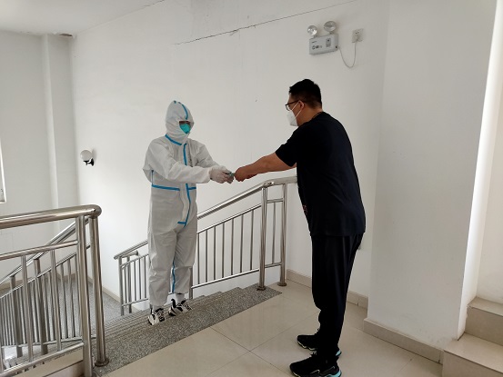 4月16日,城發(fā)惱包物流園區(qū)內(nèi)一名外省來我市的韻達(dá)司機(jī)被確定為新冠肺炎無癥狀感染者。集團(tuán)公司高度重視,第一時間啟動應(yīng)急處置預(yù)案,當(dāng)天集團(tuán)公司主要領(lǐng)導(dǎo)立刻深入園區(qū)開展疫情防控工作部署,并在現(xiàn)場召開了調(diào)度會,安排部署疫情阻擊相關(guān)工作。為阻斷疫情蔓延、擴(kuò)散,確保隔離點(diǎn)安全、規(guī)范運(yùn)行,惱包物流園區(qū)封控管理期間,集團(tuán)公司領(lǐng)導(dǎo)每天至少一次深入園區(qū)指導(dǎo)防疫工作,有時甚至三次。