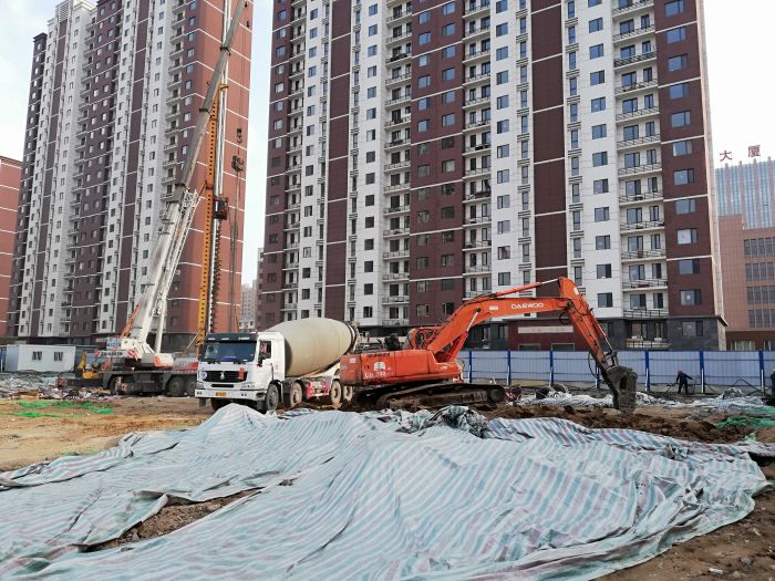 2月14日(正月初十),金城小區(qū)商業(yè)樓項(xiàng)目參建各方工作人員及施工機(jī)械全部入場(chǎng),正式恢復(fù)施工。