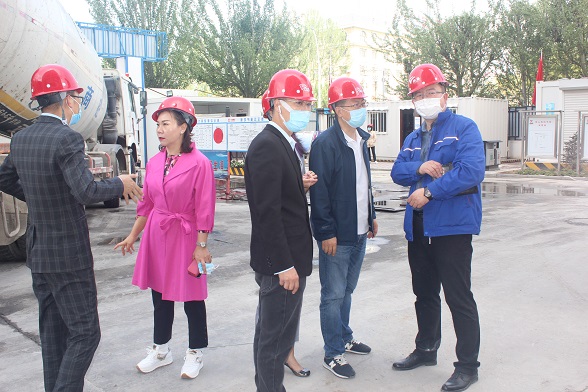 儀式結(jié)束后,一行人來到位于金牛座底商的售樓部參觀檢查裝修情況。目前,該項(xiàng)目3-10層二次結(jié)構(gòu)已施工完成,4、5層墻體抹灰全部完成,樣板間裝修施工正在進(jìn)行。