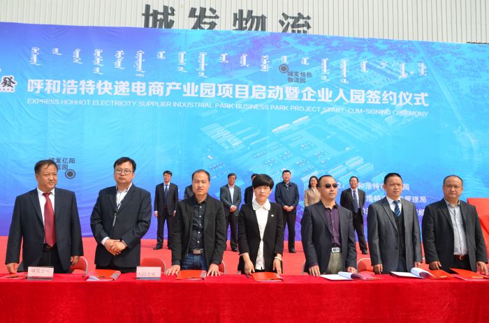 4月26日上午,呼和浩特快遞電商產(chǎn)業(yè)園項目啟動暨企業(yè)入園簽約儀式在城發(fā)惱包物流園區(qū)舉行,順豐、中通、宅急送、百世、申通、中通、圓通、韻達等16家快遞企業(yè)與城發(fā)公司簽約,計劃分二期入駐惱包物流園區(qū)。