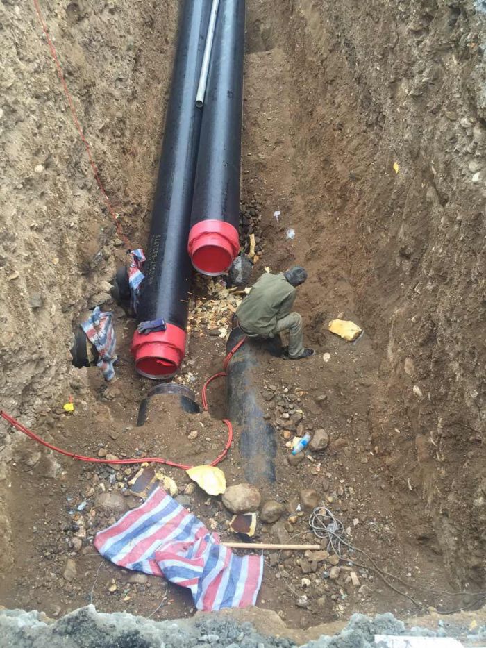 7月14日市政局下達昭烏達路哲里木路改造提升工程成吉思汗大街至北二環(huán)段供熱管網(wǎng)改遷入場通知,此段改遷項目分為南北兩部分。其中北段涉及管徑為DN400,溝長110米,新線位向東移位約9米,7月18日晚已完成原有管線的拆除工作,現(xiàn)溝槽已回填。新管線位已設(shè)立圍擋,正在進行開槽。南段涉及管徑為DN450,溝長170米,新線位向東移動10米,由于工期緊,采用先裝新管線再拆除舊管線的施工方案,20日上午已開始切割新管線的路面。
