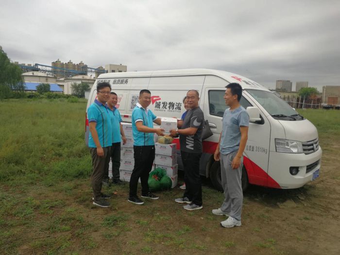 2018年8月17日,城發(fā)物流公司工會組織開展了暑期慰問、清涼一夏的送清涼慰問園區(qū)一線員工的活動。黨支部書記楊福平、經(jīng)理丁雪峰等一行為物流公司一線員工送去了慰問品。