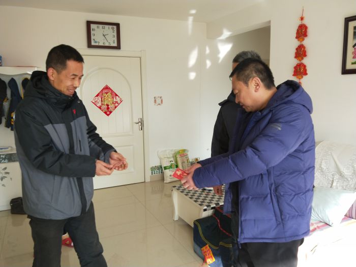 1月29日下午,辛家營分公司黨支部書記、工會主席王軍,工會副主席王學(xué)達,黨群處任淑欣一行對辛家營分公司趙錦平等4名困難職工進行春節(jié)前慰問。
